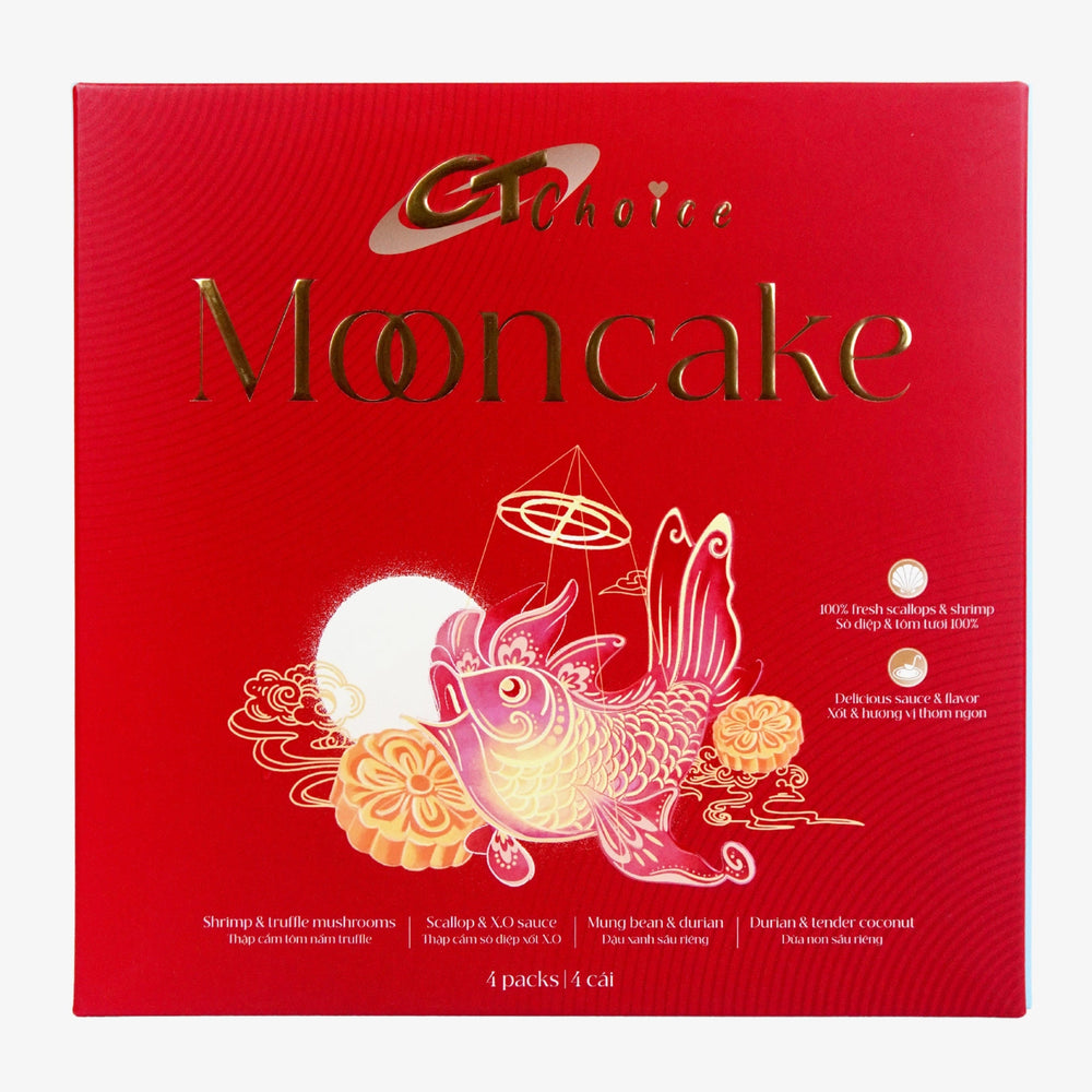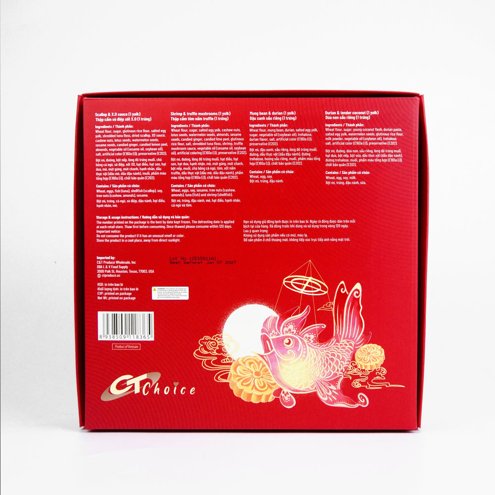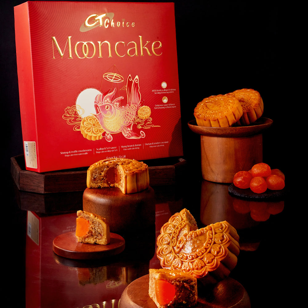 This assorted mooncake set blends savory gourmet fillings with traditional sweet flavors. From rich scallop in X.O sauce, sweet shrimp with truffle mushroom, to creamy durian with tender coconut and mung bean—each bite is a perfect fusion of flavors, crafted for a memorable Mid-Autumn experience.