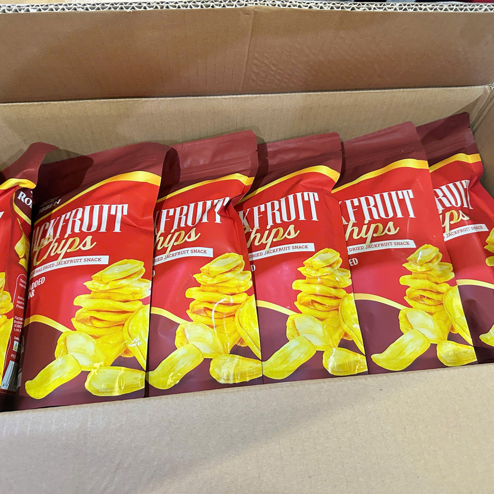 Jackfruit Chips are a snack made from fresh jackfruit segments, typically dried using vacuum drying or vacuum frying methods to achieve crispiness. The product retains the natural sweetness of jackfruit and may contain a small amount of vegetable oil depending on the processing method. Jackfruit chips are a convenient snack option, sometimes promoted as a source of fiber and some natural vitamins from jackfruit.