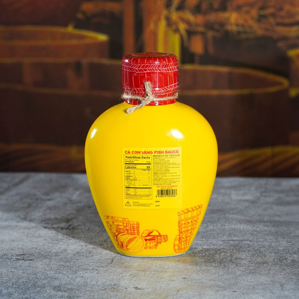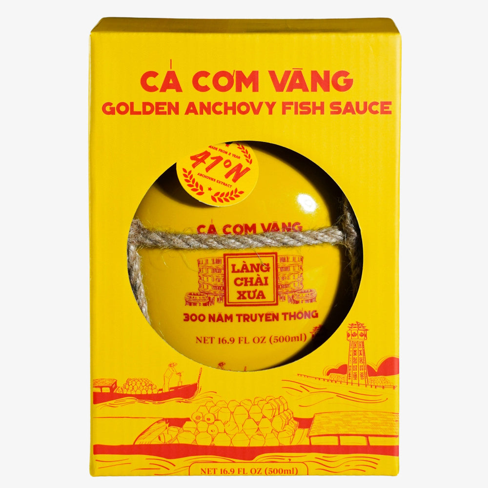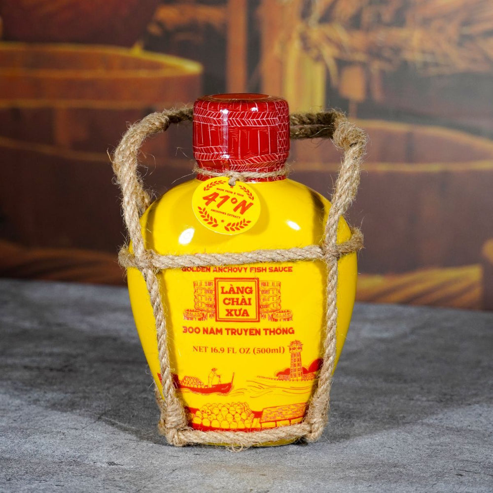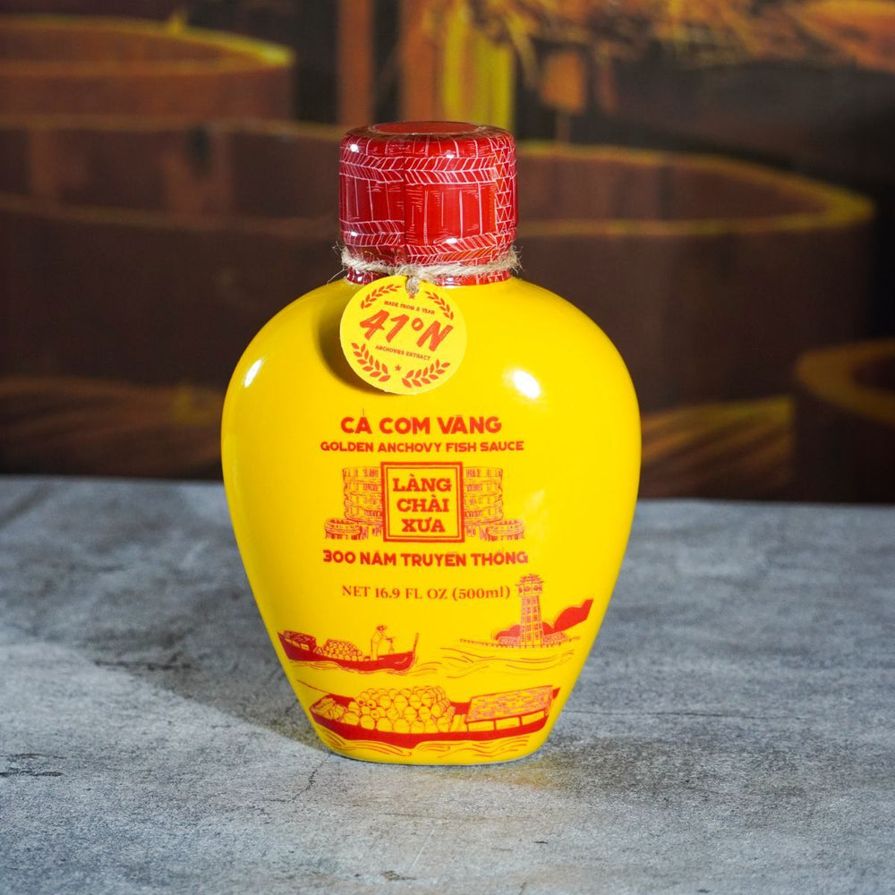 Làng Chài Xưa Golden Anchovy Fish Sauce is made from the rare golden anchovy with red belly (also known as red anchovy) and pure salt, fermented in aged wooden barrels. This fish sauce has a history of over 300 years in Làng Chài Xưa, Phan Thiết, and was originally placed in ceramic jars by the founder of the trade, Trần Gia Hòa, and was once sold by boat as the most popular in Vietnam. The Golden Anchovy Fish Sauce is one of the premium and uniquely delicious fish sauces from the Làng Chài Xưa Fish Sauce Museum, made from the rare golden anchovy with red belly (also known as red anchovy). This fish, scientifically named Apogen Anchovy, thrives in the nutrient-rich waters of Phan Thiết. The fish sauce made from the golden anchovy with red belly has a beautiful reddish-brown color, a strong aroma, high protein content, and a rich, sweet flavor from the anchovy extract.